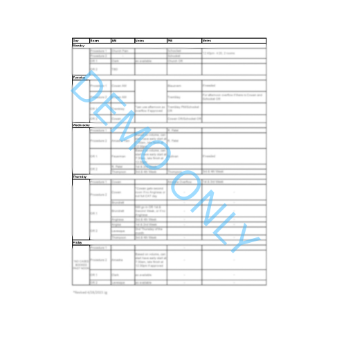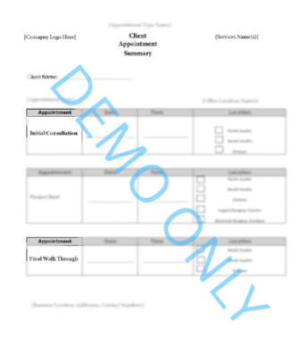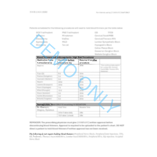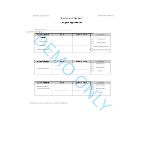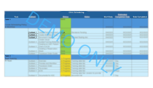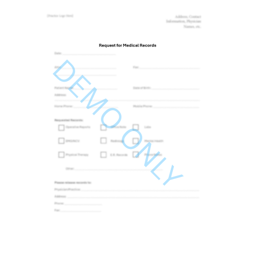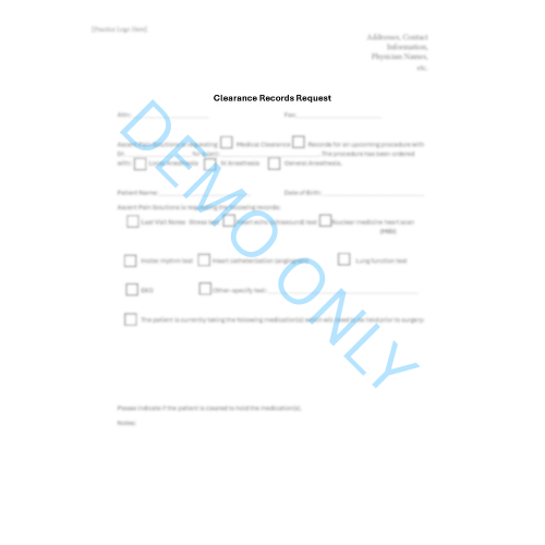 Digital Document Creation from $200.00 Blank Patient/Customer Tracking Spreadsheet $200.00 RACI Matrix Template $125.00 Document Bundle- Medical Forms $300.00 Document Bundle- Pain Management $800.00 Document Bundle- General Office Forms $250.00 Document & Template Updates Subscription $200.00